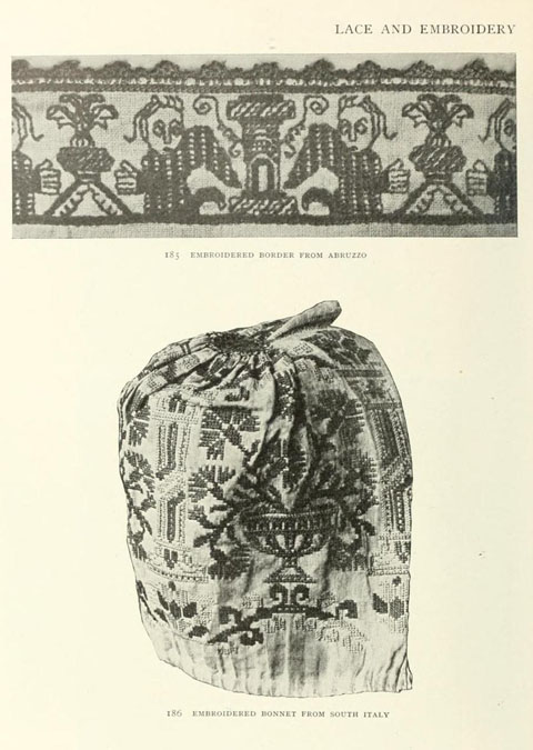 Southern Italy | Date: 1913 | Notes: The image was taken from the book, "Peasant Art in Italy," edited by Charles Holme (London: The Studio Ltd., 1913). Photo caption: "Embroidered bonnet from South Italy." For the complete copyright-free text visit www.archive.org. | Contributed by: Courtesy of www.archive.org