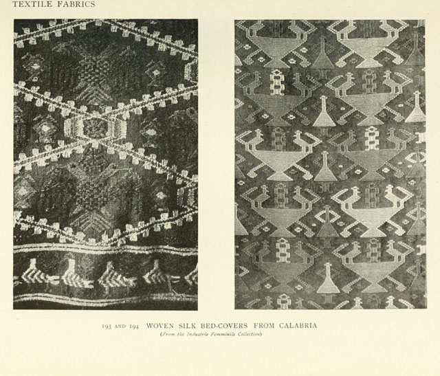 Calabria, Italy | Date: 1913 | Notes: The image was taken from the book, "Peasant Art in Italy," edited by Charles Holme (London: The Studio Ltd., 1913). Photo caption: "Woven silk bed covers from Calabria." For the complete copyright-free text visit www.archive.org. | Contributed by: Courtesy of www.archive.org