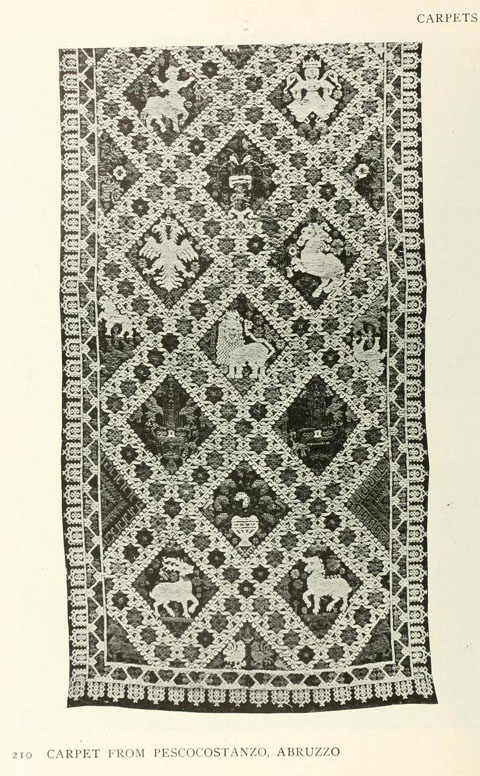 Abruzzo, Italy | Date: 1913 | Notes: The image was taken from the book, "Peasant Art in Italy," edited by Charles Holme (London: The Studio Ltd., 1913). Photo caption: "Carpet from Pescocostanzo, Abruzzo." For the complete copyright-free text visit www.archive.org. | Contributed by: Courtesy of www.archive.org