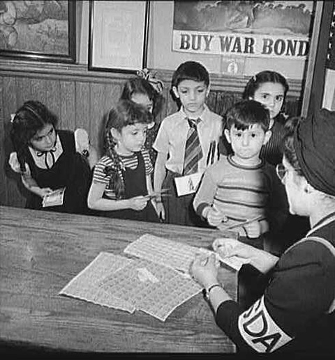 New York City, New York, U.S.A. | | Date: Dec. 1942 | | Notes: "Italian-American children buying stamps and bonds at Public School Eight on King Street from mothers who volunteer to guard doorways and perform other duties in schools under the school defense aid program." Digital Image ID: 8d24228. | Contributed by: Courtesy of The Library of Congress