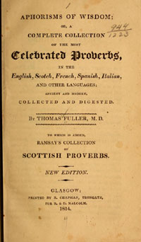 Notes: The following list was taken from "Aphorisms of Wisdom: or, a Complete Collection of the Most Celebrated Proverbs in the English, Scotch, French, Spanish, Italian, and other languages: Ancient and Modern" selected by Thomas V. Fuller, M.D., (GLASGOW: (R. & D. MALCOLM, 1814).