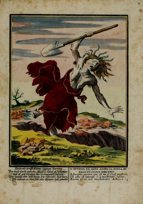 I. L'inuida fa alli altri la fossa, e ella vi casca dentro.