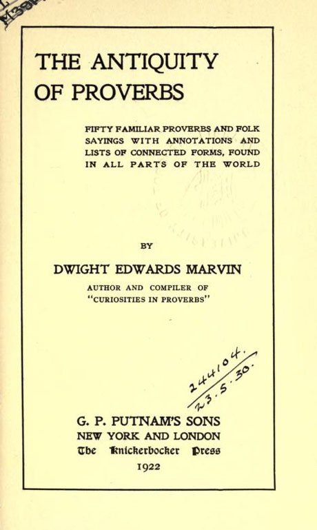 Italy | Date: Centuries-old | Notes: The following list of proverbs on money was taken from the book, "The Antiquity of Proverbs Fifty Familiar Proverbs and Folk Sayings with Annotations and Lists of Connected forms, Found in All Parts of the World" by Dwight Edwards Marvin (New York: Putnam's Sons, 1922).