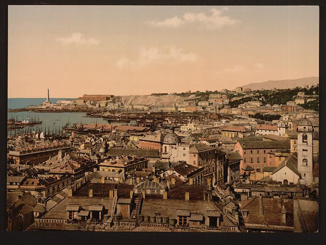Genoa, Liguria, Italy | Date: ca 1890-1900 | Notes: "View towards the lighthouse, Genoa, Italy." Digital ID: 06512. | Contributed by: Courtesy of the Library of Congress, PPOC