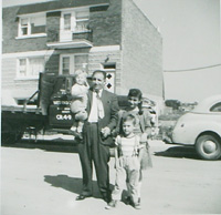 Montreal, Quebec, Canada | Date: 1961 | Notes: In the 1950s most Italians who settled in Montreal lived in the area surrounding "Little Italy" but by the early 1960s many newcomers had moved out of the area, and bought their first homes (often duplexes) in new developments further north. The duplex seen in the adjoining photo is typical of the kind most Italian Montrealers invested in. A recent census found that over 64 per cent of Montrealers of Italian origin own the place they live, compared to 42 per cent of the non-ethnic population. Present in the photo are: Giuseppe Melfi, his daughter and his two nephews.
