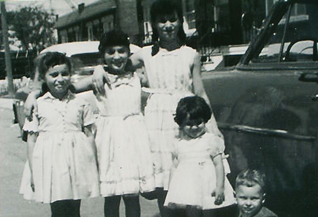 Montreal, Quebec, Canada | Date: 1958 | Notes: The contributor, her sister and cousins stand in front of their first home on Chabot St. At the time the four cousins all lived together. Despite the crowded conditions everyone was relatively happy. | Contributed by: Mary Melfi