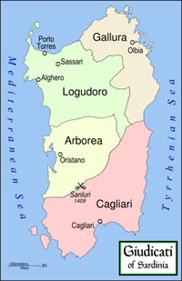Map of four Sardinian medieval "giudicati"