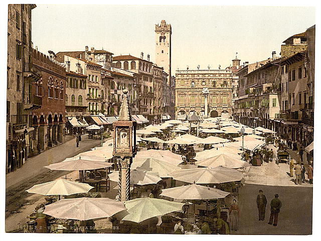 Verona, Italy | Date: ca. 1890-1900 | Notes: "Piazzi delle Erbe, Verona, Italy." Digital ID: 06746. | Contributed by: Courtesy of the Library of Congress, PPOC