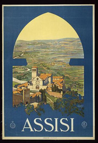 Assisi, Umbria, Italy | Date: ca 1920 | Notes: "Poster showing Assisi and the countryside as if from a window in a tower." Digital ID: 3g12502. | Contributed by: Courtesy of the Library of Congress