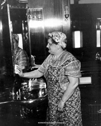 Toronto, Ontario, Canada | Date: 1942 | Notes: Many new immigrants got jobs as maintenance workers (including Mary Melfi's mother). Those who worked for big companies like CN Rails were viewed as the luckiest people in the world -- they had jobs with security and pension benefits. The picture to the left is part of the CSTC/CN collection #CN004110 titled "CN employee cleaning the interior of a passenger car." Permission to use the image was granted by the Canada Science and Technology Museum Corporation (CSTC). | Contributed by: Courtesy of CSTC