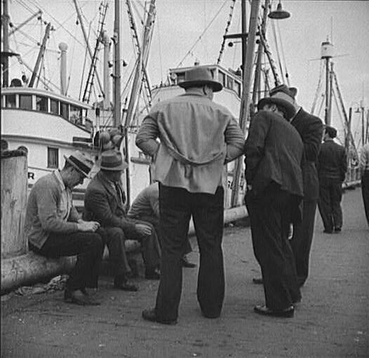 San Francisco, California, U.S.A. | Date: Dec. 1941 | Notes: "Italian fishermen gathered on 'Fisherman's Wharf'." Digital ID: 8c33672r. | Contributed by: Courtesy of The Library of Congress