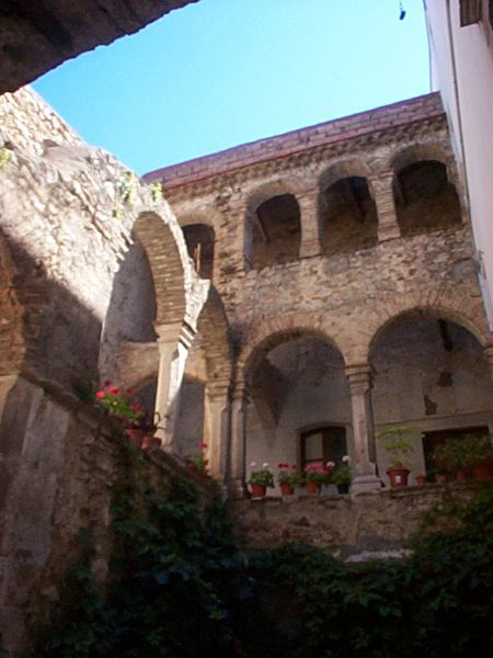 The Palazzo Ducale (Ducal Palace), probably originally built as a Norman castle, is the seat of municipal government. The palace is now repainted as it was decades ago. The exterior walls are alternating panels of whitish grey and charcoal black. The upper levels, surrounding the stone windows are a combination of pink and cream. The top level, overlooking a large terrace, is faced in sunflower yellow. Later a part of the building became Albergo Moderno (the Modern Hotel), now also abandoned. The structure has three distinct facades. One distinctly shows the physical structure of the original castle. The second has a renaissance feel and housed the rulers of the town. The third is a large brick neoclassical structure which was adjoined to the castle in the nineteenth century.