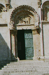 Cathedral of San Basso. "All 's characteristic of the medieval town of Termoli, dominated by the Swabian castle, against the backdrop of a small square in which flow lanes and alleys, the Cathedral of San Basso keeps intact the charm of the medieval church of great importance. The construction, well as visible today, and the result of a series of building phases started in 'High Middle Ages and ended around the XIII century .... From tourist brochure: "L'Arte Romanica" published by Edizioni Enme. Photo: Mauro Pesutti. | Contributed by: Courtesy of Regione Molise Assessorato al Turismo