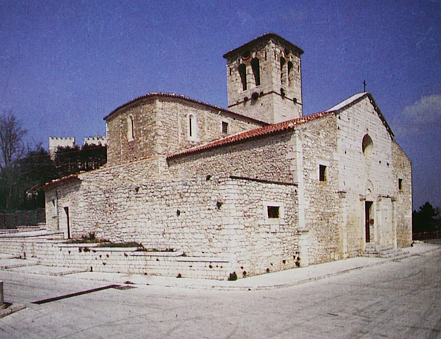 "Church of San Giorgio. The church, as illustrated by the excavations conducted in recent years by the Superintendence of Cultural Heritage, was built on the structures of a sacred building in the early tenth century.; Then immediately changes and enlargements up to about architectural structure. All of the sculptures that decorate the outside are the testimony of a renovation occurred in the first half of the thirteenth century. The front, as today is, and made from the central, original, and the two sides added . On the left side there is a fence in a brick courtyard that during the Middle Ages allegedly been used as a cemetery. The space division of the facade and obtained four semipilastril ...." From tourist brochure: "L'Arte Romanica" published by Edizioni Enme. Photo: Mauro Pesutti. | Contributed by: Courtesy of Regione Molise Assessorato al Turismo