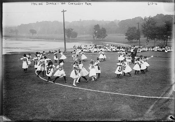 New York City | Date: Sept. 1908 | Notes: "Doing an Italian folk dance at Van Cortlandt Park, New York." Digital ID: 02341. | Contributed by: Courtesy of the Library of Congress