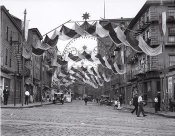 Little Italy, North End, Boston, U.S.A. | Date: June 23rd, 1929 | Notes: North Street in the North End, decorated for "All Saints Day." | Contributed by: Courtesy of the Boston Public Library
