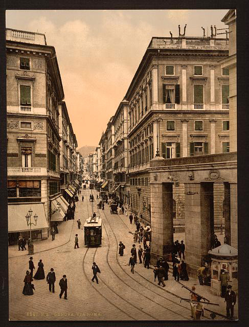 Genoa, Italy | Date: ca. 1890 - 1900 | Notes: "Via Roma, Genoa, Italy." Digital ID: 06517. | Contributed by: Courtesy of the Library of Congress