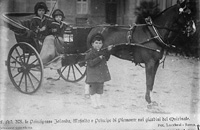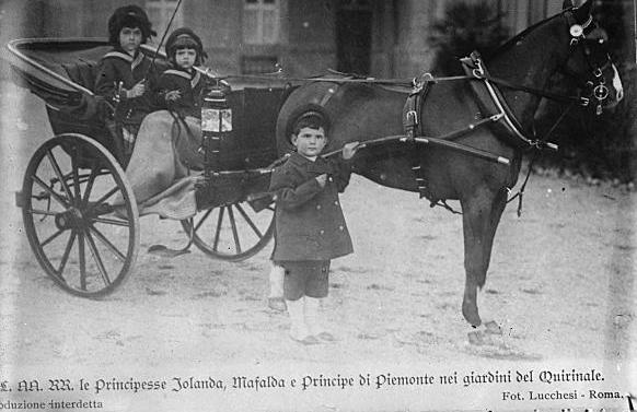 Italy | Date: n.d. [1900s?] | Notes: "Princess Yolanda and Mafalda in horse-drawn carriage, beside which stands the Crown Prince of Italy." Digital ID: 05056. | Contributed by: Courtesy of the Library of Congress