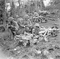 Campobasso, Molise, Italy | Date: October 1943 | Notes: "Company Sergeant-Major Irene Roy distributing rum ration to infantrymen of the Royal 22e Regiment, who are in weapon pits along the main road between Gildone and Campobasso, Italy, October 1943." | Contributed by: Courtesy of Lieut. Alex M. Stirton / Canada. Dept. of National Defence / Library and Archives Canada / PA-190296
