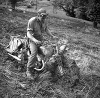 Campobasso, Molise, Italy | Date: October 1943 | Notes: "An unidentified Canadian dispatch rider near Campobasso, Italy, October 1943." | Contributed by: Courtesy of Lieut. Jack H. Smith/ Canada. Dept. of National Defence/ Library and Archives Canada/ PA-166938