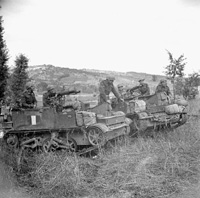 Manacilione, Abbruzi, Italy | Date: ca. October 9-18, 1943 | Notes: "Personnel of the Saskatoon Light Infantry (M.G.) in Universal Carriers, Monacilione, Italy, ca. 9-18 October 1943." | Contributed by: Courtesy of Lieut. Alex M. Stirton / Canada. Dept. of National Defence/ Library and Archives Canada / PA-197952