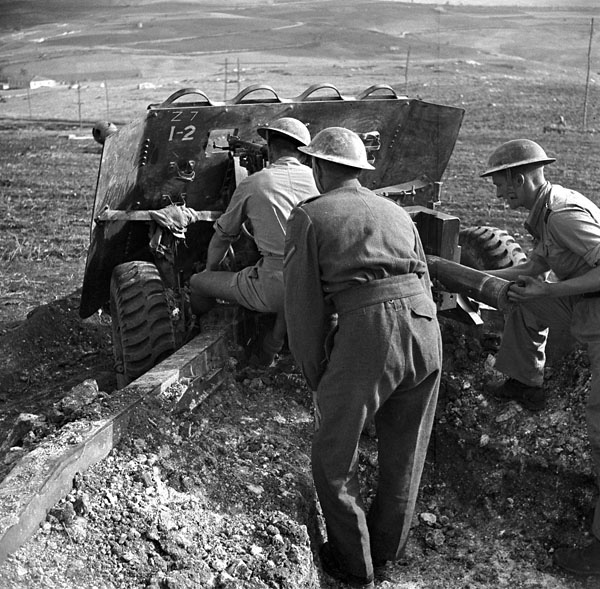 Campobasso, Molise, Italy | Date: October 25 1943 | Notes: "Gun crew with their 17-pounder anti-tank gun of the 57th Battery, 1st Anti-Tank Regiment, Royal Canadian Artillery (R.C.A.), near Campobasso, Italy, 25 October 1943." | Contributed by: Courtesy of Capt. Jack H. Smith/ Canada Dept. of National Defence/ Library and Archives Canada/ PA-213693