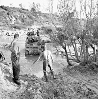 Colle d'Anchise, Molise, Italy | Date: October 26 1943 | Notes: "A Sherman tank of "A" Squadron, Ontario Regiment, crossing a stream near Colle d'Anchise, Italy, 26 October 1943." | Contributed by: Courtesy of Lieut. Terry F. Rowe/ Canada. Dept. of National Defence/ Library and Archives Canada / PA-204149