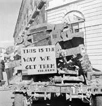 Campobasso, Molise, Italy | Date: October 27 1943 | Notes: "A Royal Canadian Electrical and Mechanical Engineers (R.C.E.M.E.) display supporting the Fifth Victory Bond campaign, Campobasso, Italy, 27 October 1943." | Contributed by: Courtesy of Lieutenant Frederick G. Whitcombe/ Canada. Dept. of National Defence/ Library and Archives Canada/ PA-191062