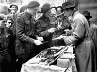 Naples, Italy | Date: November 27 1943 | Notes: "Troopers of the Governor General's Horse Guards at an outdoor shop on the Via Roma, Naples, Italy, 27 November 1943." | Contributed by: Courtesy of Lieut. Strathy E.E. Smith/ Canada. Dept. of National Defence/ Library and ARchives Canada/ PA-204150