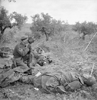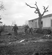 San Leonardo di Ortona, Abruzzo, Italy | Date: December 10 1943 | Notes: "Infantrymen of the 48th Highlanders of Canada dealing with a German counterattack, San Leonardo di Ortona, Italy, 10 December 1943." | Contributed by: Courtesy of Lieut. Frederick G. Whitcombe/ Canada. Dept. of National Defence/ Library and Archives Canada/ PA-166566
