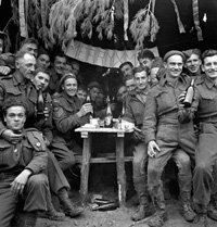 Ortona, Abruzzo, Italy | Date: December 25, 1943 | Notes: "Canadian soldiers enjoying a few drinks on Christmas Day at the front, Ortona, Italy, 25 December 1943." | Contributed by: Courtesy of Lieut. Frederick G. Whitcombe/ Canada. Dept. of National Defence/ Library and Archives Canada/ PA-163936