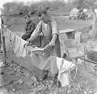 Castel Frentano, Abruzzo, Italy | Date: December 20, 1943 | Notes: "Private james Sproul of the 10th Field Regiment, Royal Canadian Engineers (R.C.E.), hanging washing on the line, Castel Frentano, Italy, 20 December, 1943." | Contributed by: Courtesy of Capt. Jack H. Smith/ Canada. Dept. of National Defence/ Library and Archives Canada/ PA-137428