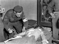 Ortona, Abruzzo, Italy | Date: January 29 1944 | Notes: "Corporal Quinton Carsell of the Regimental Aid Party, Seaforth Highlanders of Canada, administering first aid to Lieutenant J.N. Hobbs, American Field Service, north of Ortona, Italy, 29 January 1944." | Contributed by: Lieut. Terry F. Rowe/ Canada. Dept. of National Defence/ Library and Archives Canada/ PA-193909