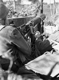 Ortona, Abruzzo, Italy | Date: January 7 1944 | Notes: "An unidentified gunner of the Saskatoon Light Infantry (M.G.) laying down harassing fire with a Vickers machine gun near Ortona, Italy, 7 January 1944." | Contributed by: Courtesy of Lieut. Alex M. Stirton/ Canada. Dept. of National Defence/ Library and Archives Canada/ PA-188911