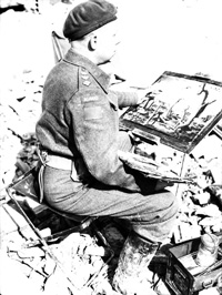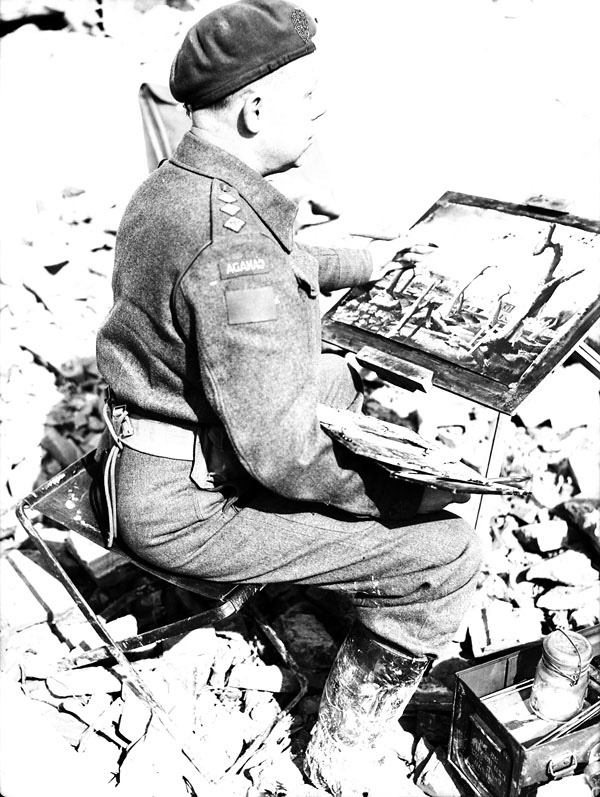 Ortona, Abruzzo, Italy | Date: March 11, 1944 | Notes: "War artist Captain Charles F. Comfort, Ortona, Italy, 11 March 1944." | Contributed by: Courtesy of Lt C.E. Nye/ Canada Dept. of National Defence/ Library and Archives Canada/ PA-128286