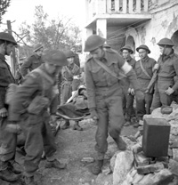 Ortona, Abruzzo, Canada | Date: January 20 1944 | Notes: "Stretcher bearers evacuating casualties from "A" Company Headquarters, Princess Patricia's Canadian Light Infantry (P.P.C.L.I.) north of Ortona, Italy, 20 January 1944." | Contributed by: Courtest of Capt. Laurie A. Audrain/ Canada. Dept. of National Defence/ Library and Archives Canada/ PA-130862