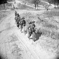 Melfa, Lazio, Italy | Date: May 1944 | Notes: "Unidentified Canadian infantrymen advancing towards Melfa, Italy, 23 May 1944." | Contributed by: Courtesy of Lieut. Alex M. Stirton/ Canada. Dept. of National Defence/ Library and Archives Canada/ PA-132878