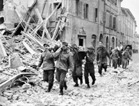 Cesena, Emilia Romagna, Italy | Date: October 21 1944 | Notes: "German prisoners-of-war carrying wounded members of the 1st Canadian Corps through Cesena, Italy, 21 October 1944." | Contributed by: Courtesy of Canada. Dept. of National Defence/ Library and Archives Canada/ PA-173520