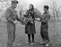Italy | Date: Jan. 29th, 1945 | Notes: "Sergeant-Major Gordon Keyes and Private R. Neary buying a chicken from an Italian woman, 29 January 1945." | Contributed by: Courtesy of Canada. Dept. of National Defence/ Library and Archives Canada/ PA-173550