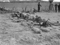 Cattolica, Emilia-Romagna, Italy | Date: ca. November 24-25,1944 | Notes: "Infantrymen of the Royal 22e Regiment shooting target practice on a Bren gun range near Cattolica, Italy, ca. 24-25 November 1944." | Contributed by: Courtesy of Lieut. J. Ernest Deguire/ Canada. Dept. of National Defence/ Library and Archives Canada/ PA-190299