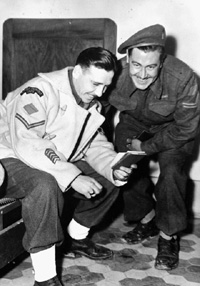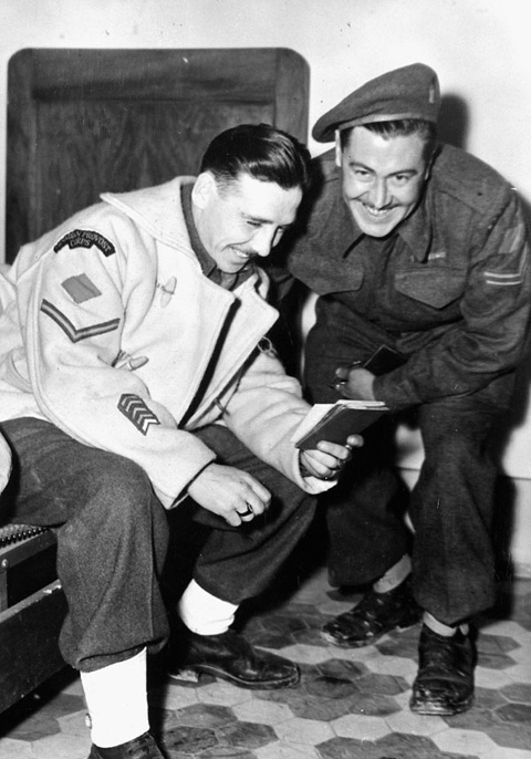 Riccione, Rimini, Italy | Date: December 1, 1944 | Notes: "Lance-corporal S. Walker and Corporal E. Hoole, Canadian Provost Corps, looking at photos of their families while preparing for Christmas leave in Canada. Riccione, Italy, 1 December, 1944." | Contributed by: Courtesy of Capt. C.E. Nye/ Canada. Dept. of National Defence/ Library and Archives Canada/ PA-173668