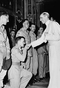 Rome, Italy | Date: December 1944 | Notes: "Lieut. Paul E. Vincent and other members of the Canadian Army with Pope Pius XII." | Contributed by: Courtesy of Canada. Dept. of National Defence/ Library and Archives Canada/ PA-166066