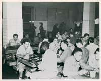 Florence, Italy | Date: 1945 | Notes: "Florence, Italy; Students at the University Study Center, first U.S. Army operated university for soldiers. Florence, Italy, are fed in modern cafeteria style mess halls." | Contributed by: Courtesy of the New York Public Library, Digital Gallery / 1260266