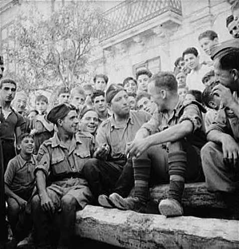 Sicily, Italy | Date: Sept.? 1943 | Notes: "French-Canadian troops in Sicily, with French speaking Italians. The Italian soldier (center) is a veteran of many Italian engagements and is now a member of a local fire fighting outfit in a small village." Digital ID: 8d34135. | Contributed by: Courtesy of the Library of Congress