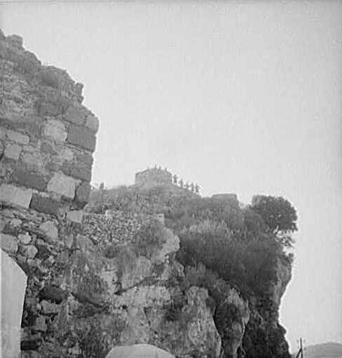 Castel Mola (vicinity), Sicily, Italy | Date: Sept. ? 1943 | Notes: "Castle on mountain peak over-looking Taormina and the sea. One of the peacetime tourist attractions visited by the British Eighth Army on a day off." Digital ID: 8d34119. | Contributed by: Courtesy of the Library of Congress