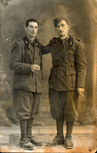 Casacalenda, Molise, Italy | Date: early 1940s | Notes: Here is picture of Raffaele Di Tullio (on the left) and a buddy. In the 1930s Raffaele Di Tullio was sent to fight in Abyssinia (Ethiopia) Africa and hated every minute of it. A quiet and peaceful man, he disliked Mussolini's war policies. In the 1940s he was taken prisoner by the Germans and spent a number of years in their miserable work camps. He refused to talk about his years there, it was too painful for him to remember. | Contributed by: Madeleine