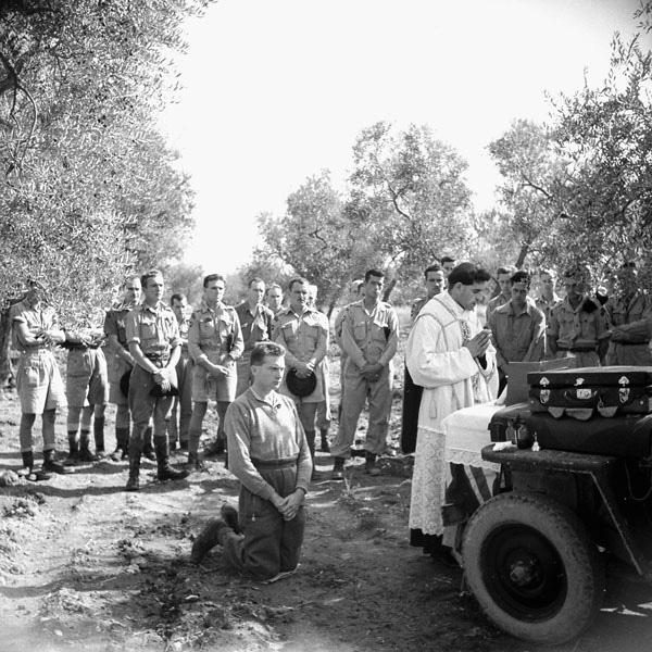 Termoli, Molise, Italy | Date: October 11 1943 | Notes: "Personnel of the Three Rivers Regiment attend mass being celebrated by an Italian priest who had previously served as a chaplain in the Italian army, Termoli, Italy, 11 October 1943." | Contributed by: Courtesy of Liet. Dwight Dolan / Canada. Dept. of National Defence / Library and Archives Canada / PA-170949