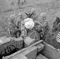 Italy | Date: October 9-18 1943 | Notes: "Unidentified Canadian soldiers with their Universal carrier and a mule carrying supplies, Italy, 9-18 October 1943." | Contributed by: Courtesy of Capt. Alex M. Stirton / Canada. Dept. of National Defense / Library and Archives/ PA-205160