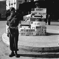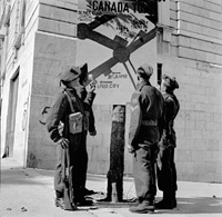 Cam;pobasso, Molise, Italy | Date: October 21 1943 | Notes: "Canadian soldiers looking at the "Canada Town" billboard, Campobasso, Italy, 21 October 1943." | Contributed by: Courtesy of Lieut. Jack H. Smith/ Canada. Dept. of National Defence/ Library and Archives Canada / PA-213690