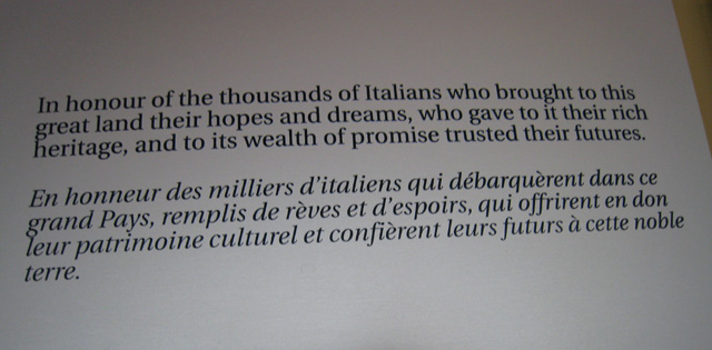 Pier 21, Halifax, Nova Scotia, Canada | Date: 2008 | Notes: A plaque inside Pier 21, Canada's Immigration Museum reads: "This site [Pier 21] witnessed the arrival of approximately one million immigrants, who have enriched the cultural mosaic of Canada. Opened in 1928, Pier 21 served as one of Canada's principal reception centres for immigrants until it closed in 1971. It typifies the large, self-contained immigration facilities that the Canadian government had begun to establish at major ports near the turn of the 20th century. The staff at Pier 21 handled large volumes of immigrants rapidly, checking their citizenship and medical condition, and providing quarantine, detention, customs and social services." | Contributed by: Sue Alfieri